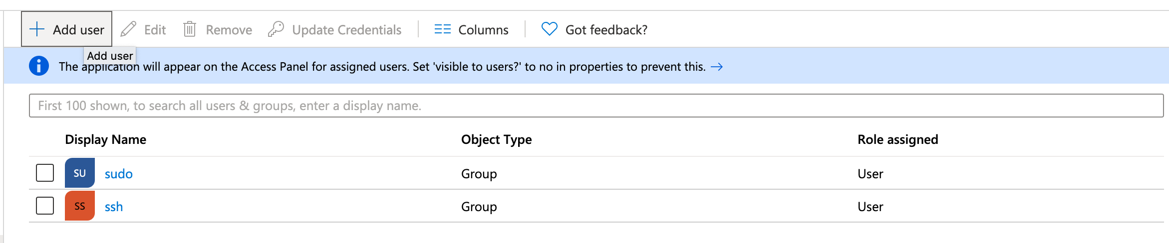 In the Azure Portal Enterprise Applications blade, you should now see Smallstep SSH. Open it.