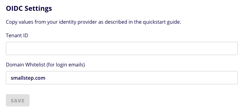 Enter your Tenant ID and Whitelisted Domains, and Save.