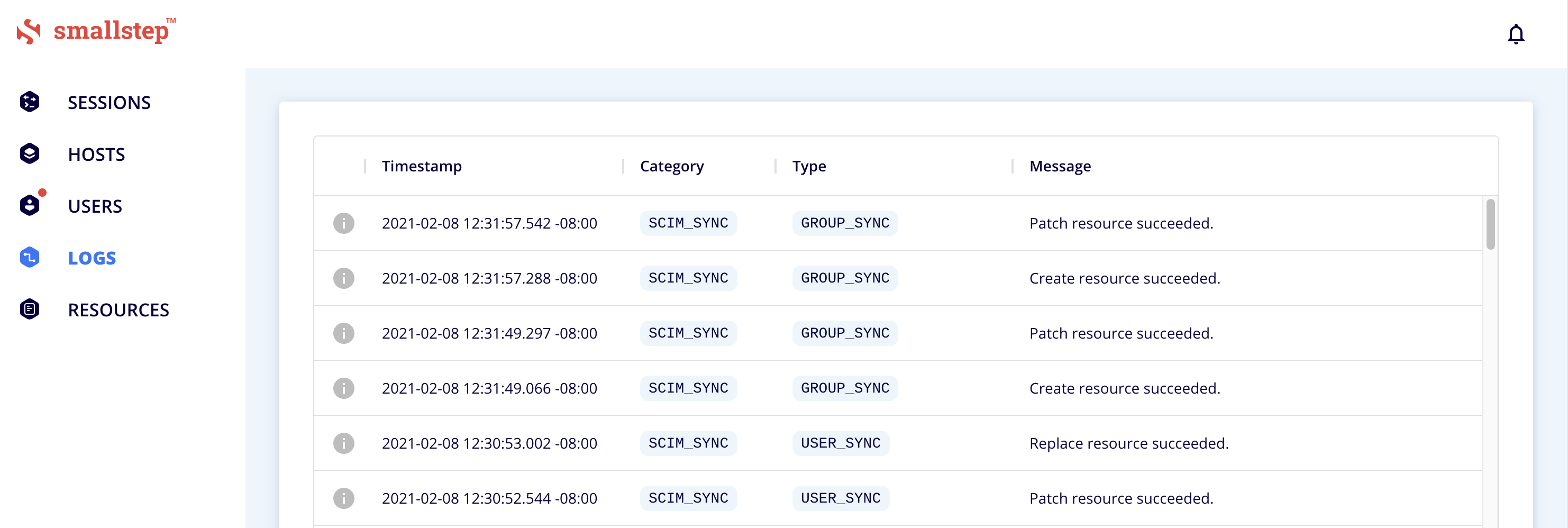 Navigate to the LOGS menu. You should see a list of success messages assocated with SCIM-SYNC catagory items.